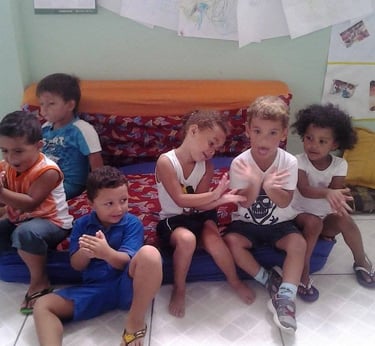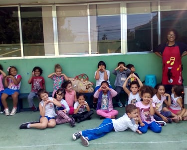 Registros de momentos em atividades de musicalização infantil e criatividade.