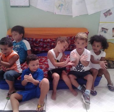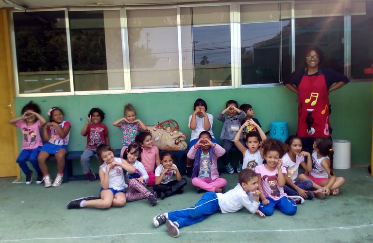Além disso, valorizamos cada expressão da criança, dando à essa expressão um sentido musical, estimulando sua criatividade, seja com o uso de instrumentos, com o uso da voz ou do corpo de modo geral.